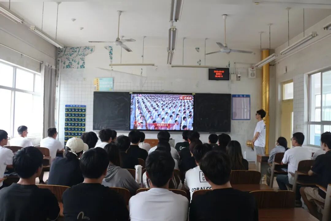 學(xué)生工作處高度重視此次觀看活動,將其作為新生軍訓(xùn)期間思想政治教育和國防教育的重要環(huán)節(jié)。在學(xué)術(shù)報(bào)告廳、合堂教室、“一站式”學(xué)生服務(wù)大廳等多場合設(shè)立主會場,并在各院系會議室、教室設(shè)立分會場,同時(shí)鼓勵學(xué)生通過手機(jī)、電腦等設(shè)備同步收看。學(xué)生工作處負(fù)責(zé)人、各院系學(xué)生工作代表、承訓(xùn)教官及2025級參訓(xùn)學(xué)生、全體在校生共同參與了觀看活動。
