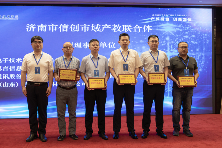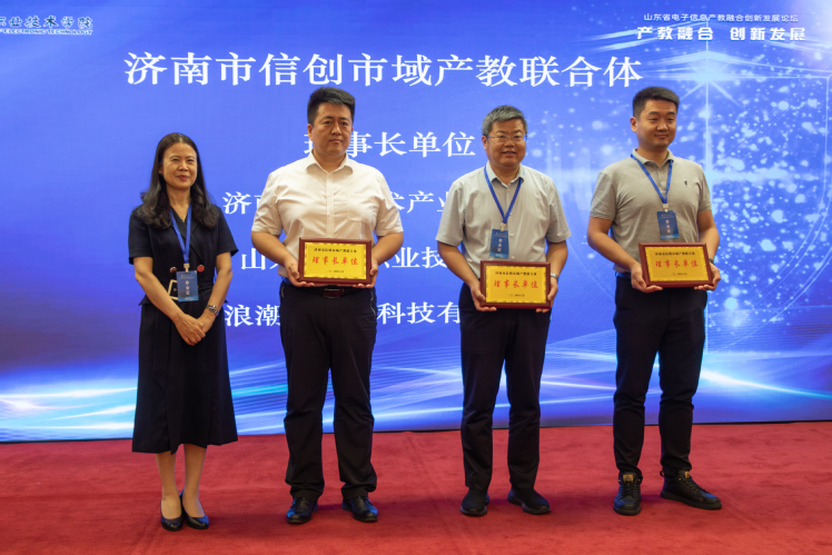 會上,舉行了“濟(jì)南市信創(chuàng)市域產(chǎn)教聯(lián)合體”成立儀式。與會領(lǐng)導(dǎo)分別為理事長單位、副理事長單位、秘書長單位、副秘書長單位授牌。