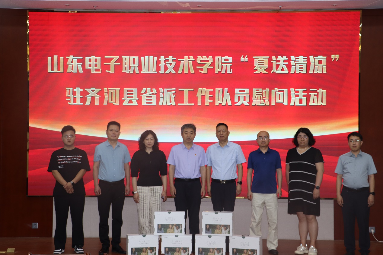 7月5日,學校組織開展“情系職工 夏送清涼”活動,黨委副書記遲會禮帶領組織人事處、工會前往德州市齊河縣,慰問看望了我校在省派工作隊帶隊工作的解竹松同志。