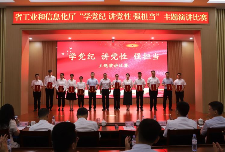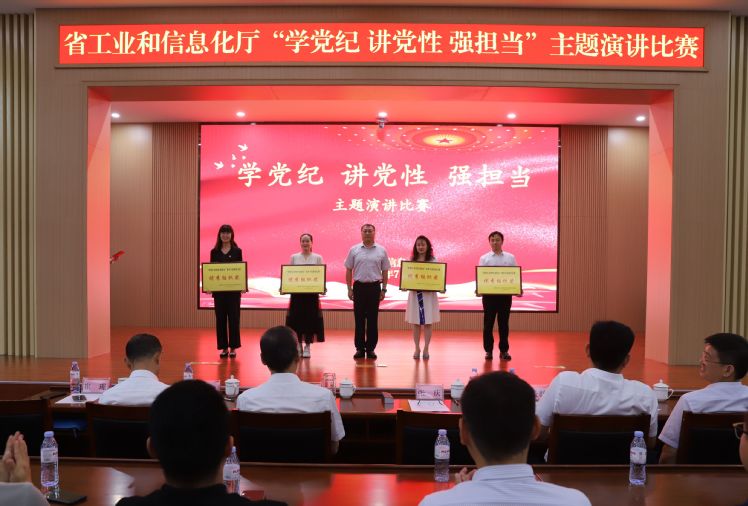 為持續(xù)深化黨紀學(xué)習(xí)教育,慶祝建黨103周年, 7月5日,省工業(yè)和信息化廳舉辦“學(xué)黨紀講黨性強擔當”主題演講比賽活動,我校青年教師劉雅惠代表學(xué)校參加比賽并榮獲一等獎,學(xué)校獲優(yōu)秀組織獎。