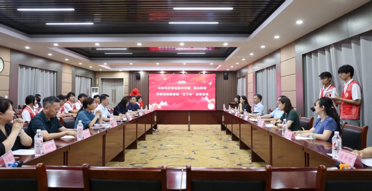 張建臣院長向龍山街道對共建活動的高度重視和大力支持表示感謝。他介紹了學校的基本情況以及學校在社會服務、實踐育人方面的工作特色亮點。他表示,學校目前構建“校地政行企”工作模式,始終積極服務地方經(jīng)濟發(fā)展與建設,開展“行走的黨建”助力鄉(xiāng)村全面振興,并取得一定成效,希望通過此次共建和新時代文明實踐基地的建立,將龍山文化與山電文化有效融合起來,促進校地協(xié)同落地生根、開花結果,打造“雙向奔赴”的共贏新典范。