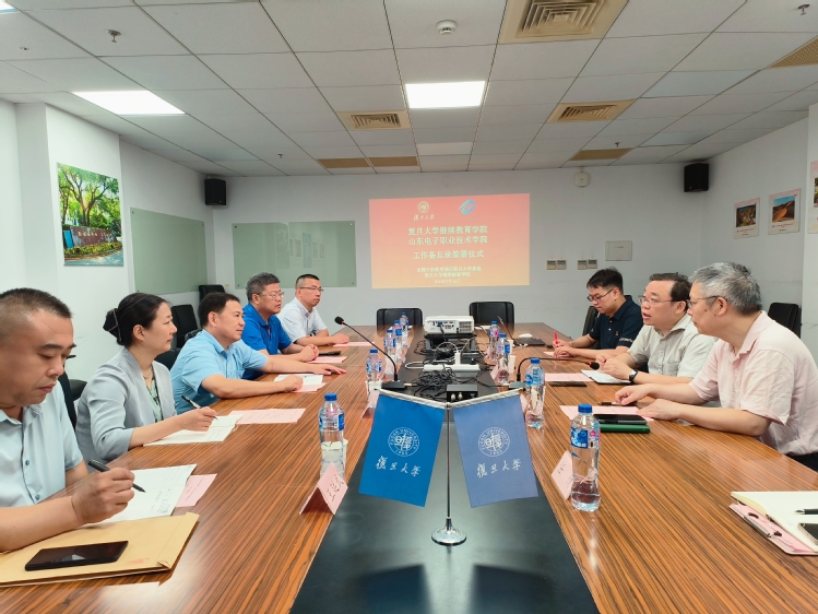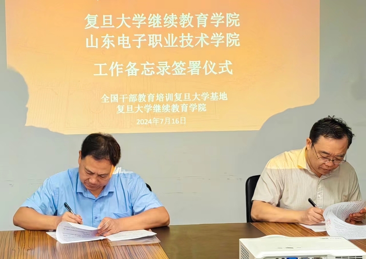 為了適應新時代職業(yè)教育新形勢、新發(fā)展、新要求,共同推動教育資源共享與人才聯(lián)合培養(yǎng),7月16日,山東電子職業(yè)技術學院與復旦大學繼續(xù)教育學院簽署工作備忘錄協(xié)議。山東電子職業(yè)技術學院院長張建臣、副院長梁會亭,復旦大學繼續(xù)教育學院院長胡波、副院長葛宏波及雙方相關部門負責人出席簽約活動。