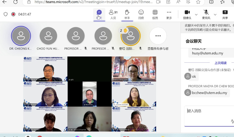 8月29日上午,我校國際交流與合作部攜手馬來西亞知名學(xué)府——馬六甲技術(shù)大學(xué)(UTeM),舉辦了以“研究生升學(xué)與研究計劃撰寫指導(dǎo)”為主題的線上研討會。此次研討會吸引了來自校內(nèi)各二級學(xué)院的四十余名教師積極參與,共同探索研究生教育的國際視野與科研創(chuàng)新的新路徑。