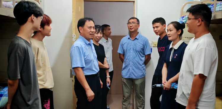 傍晚時(shí)分,院長(zhǎng)張建臣深入宿舍,與學(xué)生工作處、二級(jí)學(xué)院負(fù)責(zé)人、新生輔導(dǎo)員一同走訪慰問新同學(xué),面對(duì)面交流,共話大學(xué)生活。他親切詢問同學(xué)們的家鄉(xiāng)、入學(xué)感受、生活適應(yīng)情況,鼓勵(lì)大家要珍惜大學(xué)時(shí)光,勤奮學(xué)習(xí),全面提升自我。同學(xué)們備受鼓舞紛紛表示,將不負(fù)學(xué)院領(lǐng)導(dǎo)老師厚望,不負(fù)青春。