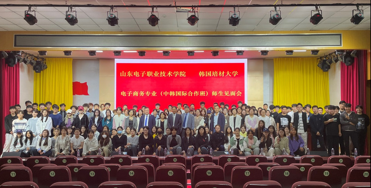 當天下午,金旭校長一行來到學術報告廳參加我校數(shù)字商務學院電子商務專業(yè)中韓國際合作班見面會。會上,對電子商務專業(yè)中韓合作辦學項目實施情況進行簡要介紹。金旭校長充分肯定了中韓合作辦學項目取得的成果,歡迎同學們到培材大學交流學習和提升學歷。金石出處長介紹了培材大學的專業(yè)設置情況和2024年度交換生項目實施計劃。