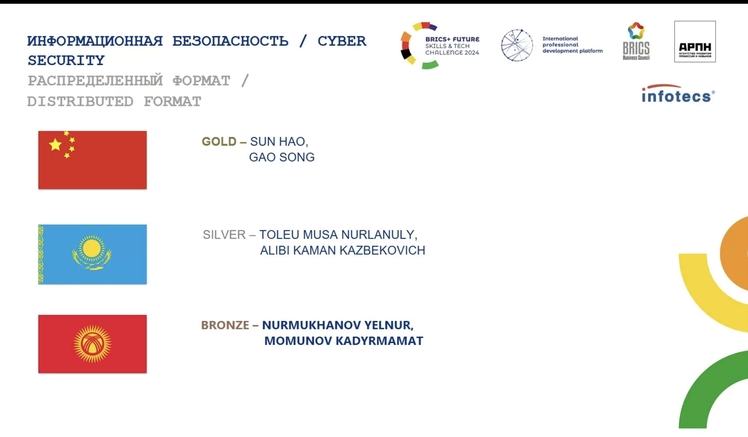 2024年10月14日至18日,2024金磚國家職業(yè)技能大賽(金磚國家未來技能和技術(shù)挑戰(zhàn)賽)俄羅斯喀山“超級杯”網(wǎng)絡(luò)安全賽項俄羅斯主賽區(qū)國際決賽在莫斯科展開激烈角逐。由我校數(shù)字安全學(xué)院尹秀蘭老師指導(dǎo),孫浩、高頌同學(xué)組成的團(tuán)隊代表中國參賽,為中國隊摘取俄羅斯喀山“超級杯”19項競賽項目的第4塊金牌。