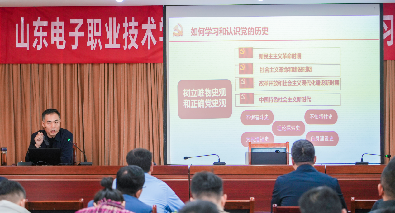 會議邀請山東高校“中國共產(chǎn)黨人精神譜系”宣講團(tuán)成員,省委黨史研究院研究一處處長、一級調(diào)研員韓立明作題為《從黨的歷史中汲取奮進(jìn)力量,全面推進(jìn)中國式現(xiàn)代化》專題輔導(dǎo)報(bào)告。報(bào)告深入闡述了如何學(xué)習(xí)和認(rèn)識黨的歷史,介紹了山東黨組織在革命時(shí)期的光輝歷史,說明了偉大建黨精神是推進(jìn)中國式現(xiàn)代化的強(qiáng)大力量。報(bào)告內(nèi)容豐富、論述精辟、聯(lián)系實(shí)際、解疑釋惑,既有理論高度,又有現(xiàn)實(shí)針對性,為學(xué)校廣大黨員干部深入學(xué)習(xí)領(lǐng)會黨的歷史和精神實(shí)質(zhì)提供了重要理論參考。