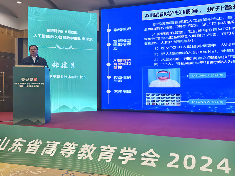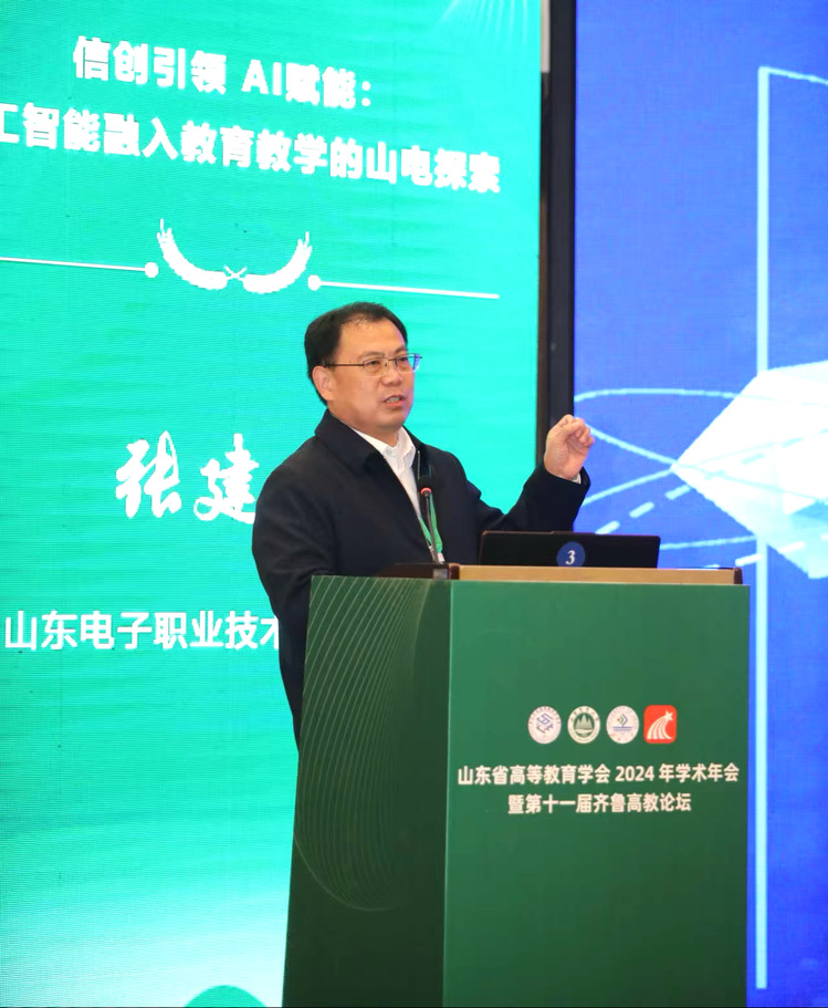 10月26日,山東省高等教育學會2024年學術年會暨第十一屆齊魯高教論壇在泰安舉行。我校黨委副書記、院長張建臣參加高職分論壇并以《信創(chuàng)引領 AI賦能:人工智能融入教育教學的山電探索》為主題作典型報告。