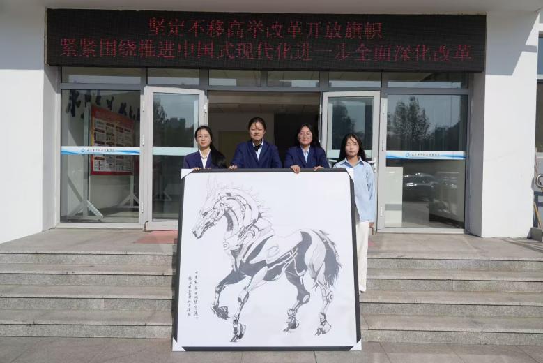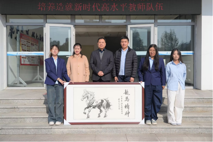 11月7日,山東電子職業(yè)技術(shù)學(xué)院大學(xué)生藝術(shù)團(tuán)梵奇繪畫隊(duì)在學(xué)校辦公樓進(jìn)行了以“龍馬精神”為創(chuàng)作主題的作品展示。院長(zhǎng)張建臣、學(xué)校團(tuán)委和社團(tuán)指導(dǎo)教師及社團(tuán)主創(chuàng)人員共同參加。