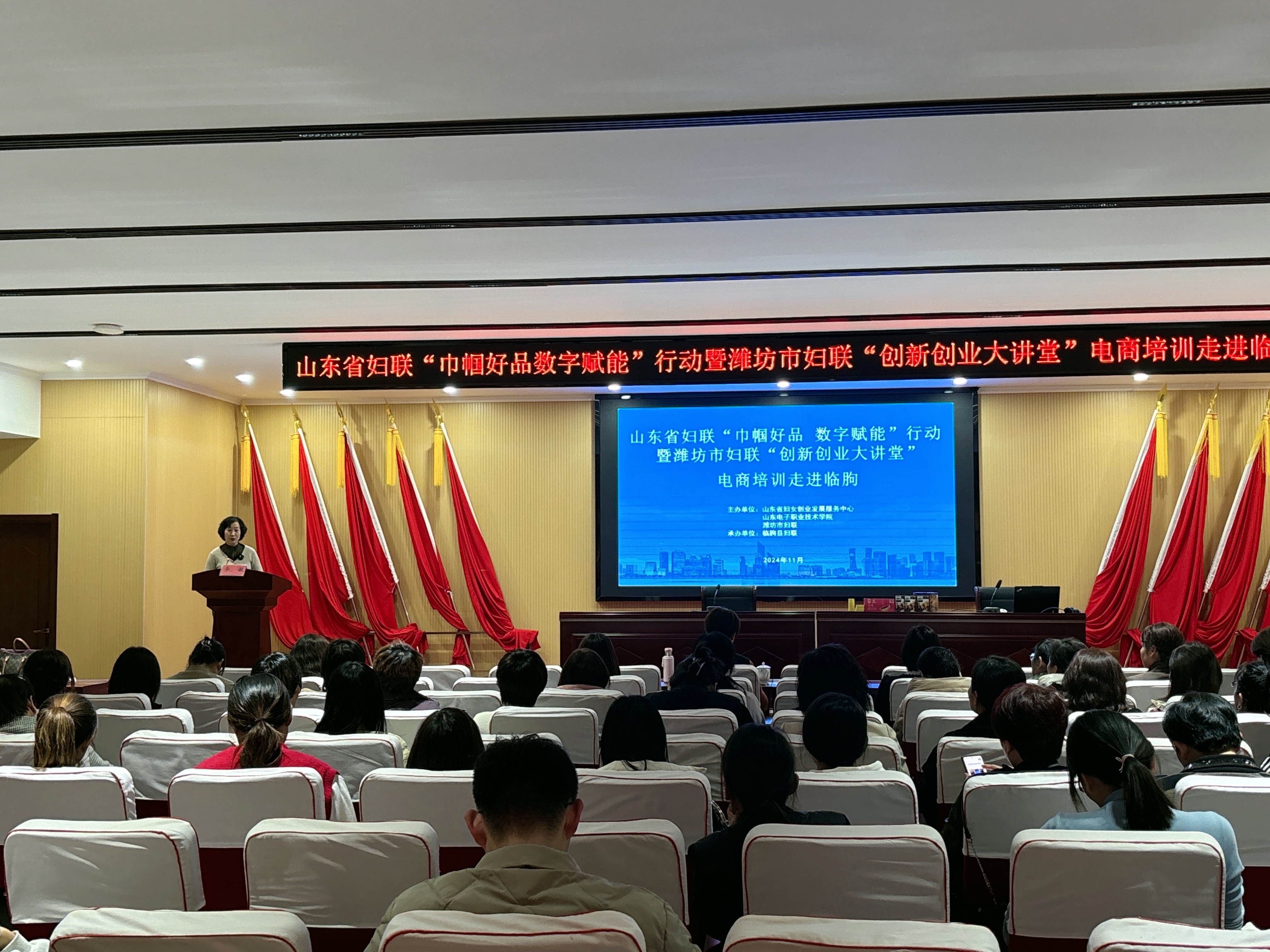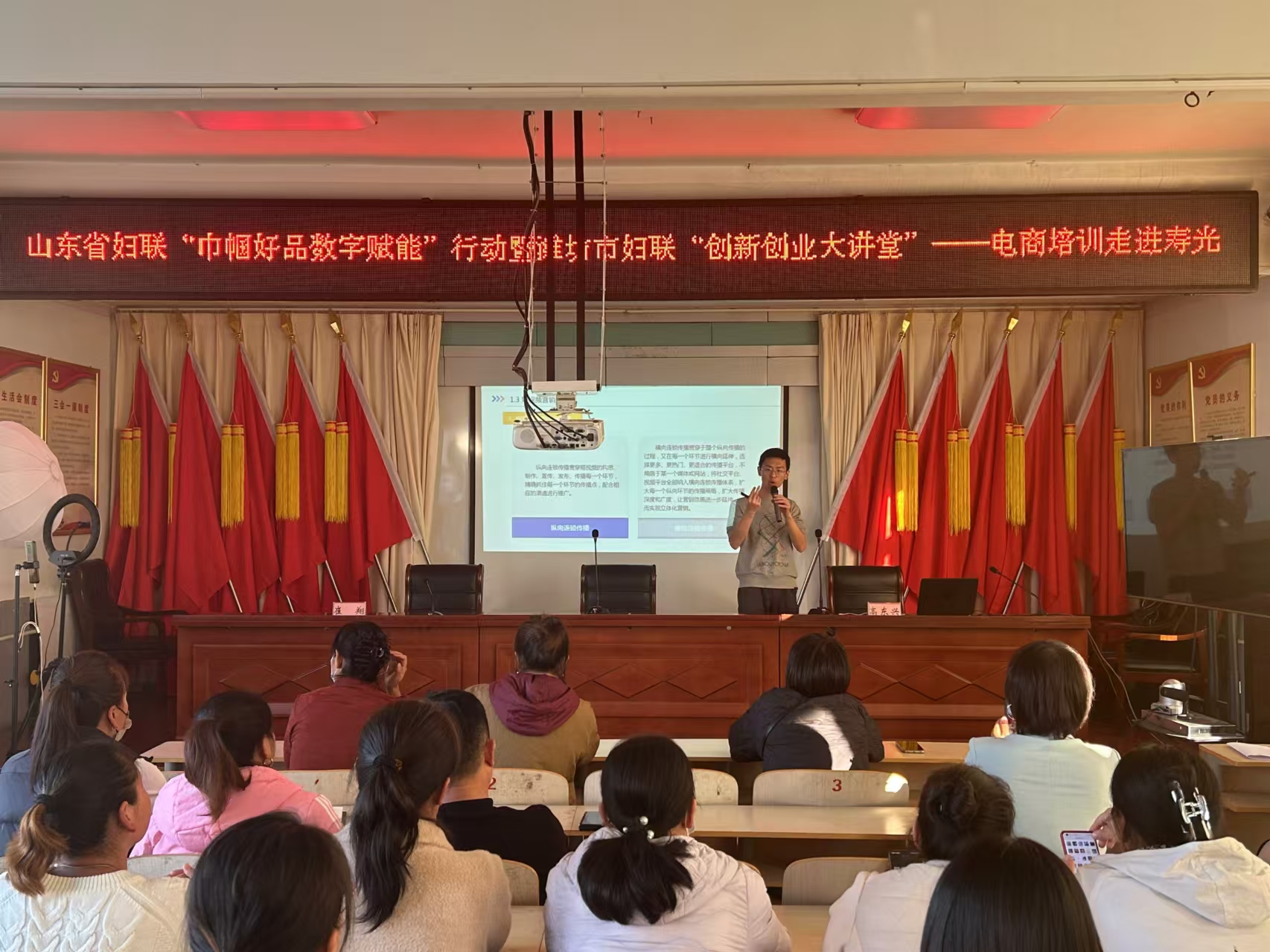 11月6日,我校數(shù)字商務(wù)學(xué)院負(fù)責(zé)人李敏教授帶領(lǐng)網(wǎng)絡(luò)營銷與直播電商專業(yè)教師,赴濰坊臨朐、壽光兩地,開展山東省婦聯(lián)“巾幗好品 數(shù)字賦能”行動(dòng)暨濰坊市婦聯(lián)“創(chuàng)新創(chuàng)業(yè)大講堂”電商培訓(xùn)活動(dòng)。