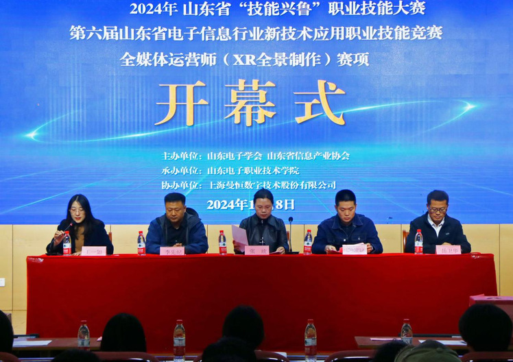 11月7日-8日,2024年山東省“技能興魯”職業(yè)技能大賽第六屆山東省電子信息行業(yè)新技術(shù)應(yīng)用職業(yè)技能競賽全媒體運營師(XR全景制作)賽項在我校成功舉辦。來自全省職業(yè)院校、行業(yè)企業(yè)的近50支隊伍參賽。