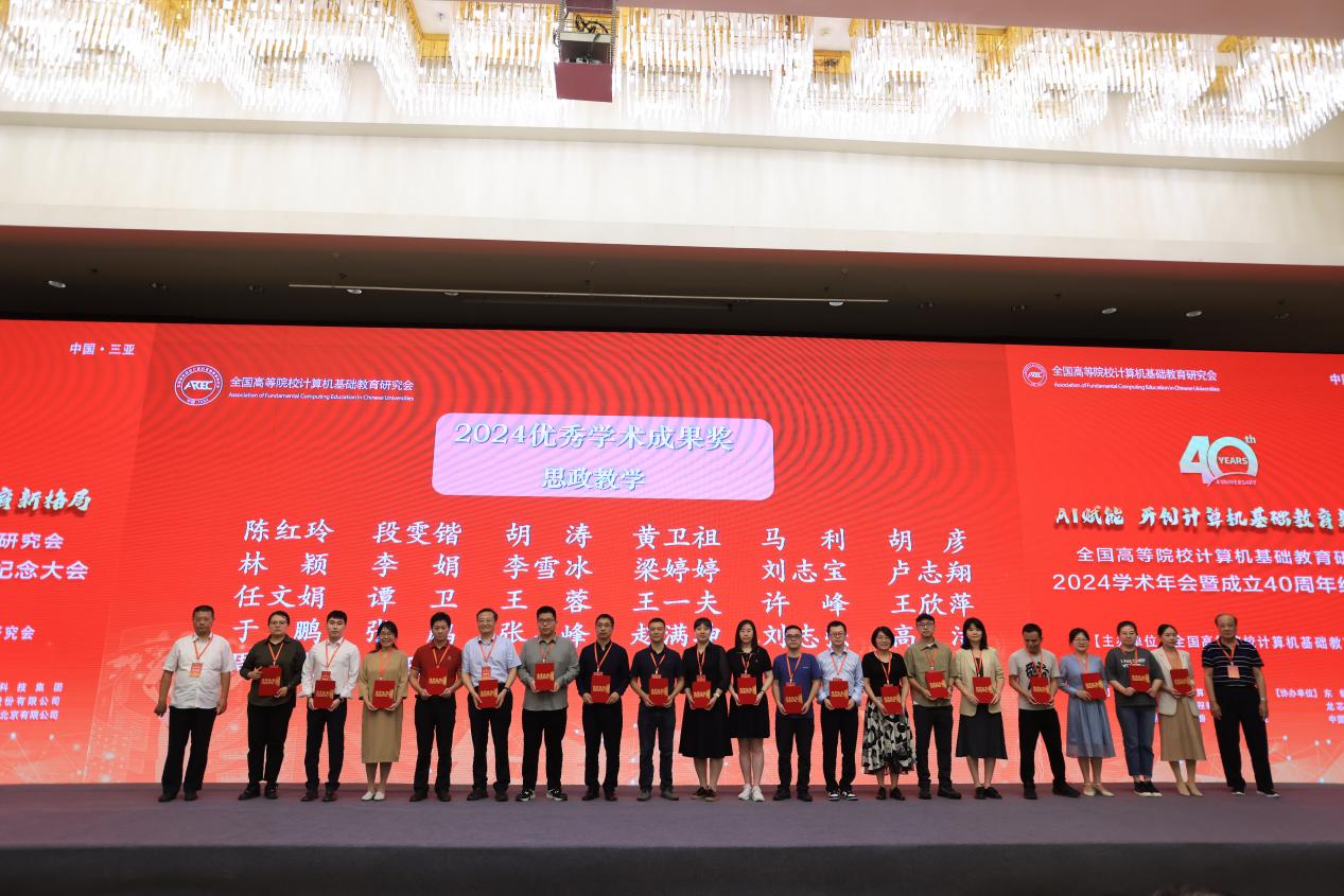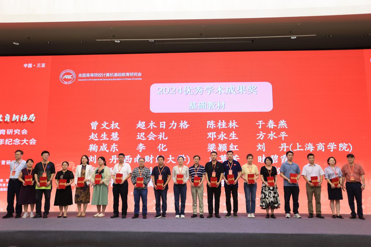 會上,為深入回顧四十年計算機基礎(chǔ)教育的成就,展望未來發(fā)展方向,大會舉辦了隆重的慶典和表彰活動。我校黨委副書記遲會禮主編的《信息技術(shù)》教材、基礎(chǔ)部負責(zé)人任文娟撰寫的《信息技術(shù)》課程思政案例分別榮獲2024優(yōu)秀學(xué)術(shù)成果基礎(chǔ)教材獎、課程思政案例獎,獲得四十周年推優(yōu)表彰。此項獎項的獲得不僅是對研究者的充分肯定和鼓勵,更是表明了我校計算機基礎(chǔ)教學(xué)改革取得了顯著成效。我校始終重視基礎(chǔ)課程教育教學(xué)改革,鼓勵老師積極參與各類學(xué)術(shù)研討和培訓(xùn)學(xué)習(xí),順應(yīng)時代要求,促進教育教學(xué)質(zhì)量提升,對學(xué)校專業(yè)和學(xué)科建設(shè)發(fā)展起到了有力的促進作用。