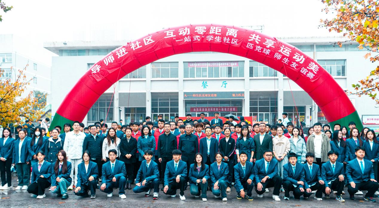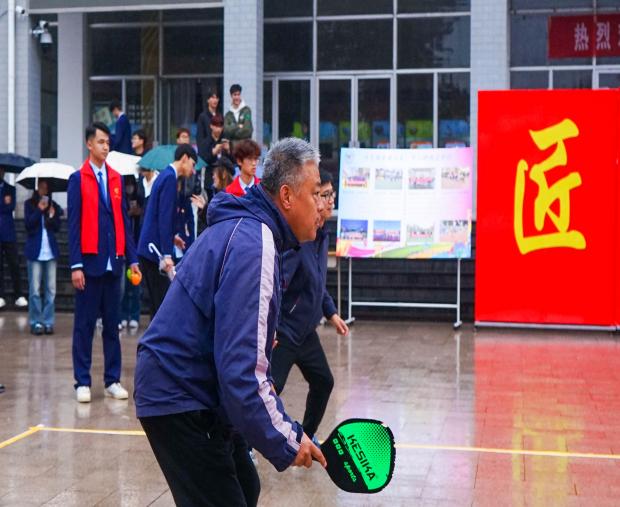 揭牌儀式后,與會(huì)領(lǐng)導(dǎo)、師生移步至社區(qū)廣場,參加以“導(dǎo)師進(jìn)社區(qū),互動(dòng)無界限,共享運(yùn)動(dòng)美”主題師生匹克球友誼賽。盡管細(xì)雨綿綿,卻絲毫未減師生們對(duì)體育運(yùn)動(dòng)的熱忱。他們手執(zhí)球拍,輕盈揮動(dòng),五彩的匹克球在空中劃出一道道優(yōu)美的弧線,傳遞出對(duì)美好生活的追求與向往,刻畫了“師生連心,攜手共進(jìn)”的感人畫面。