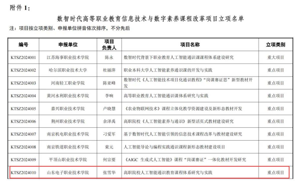 近日,教育部職業(yè)院校信息化教學(xué)指導(dǎo)委員會(huì)官網(wǎng)發(fā)布《關(guān)于公布數(shù)智時(shí)代高等職業(yè)教育信息技術(shù)與數(shù)字素養(yǎng)課程改革項(xiàng)目立項(xiàng)名單的通知》,經(jīng)專家評(píng)議、結(jié)果公示,我校大數(shù)據(jù)與人工智能學(xué)院教師張雪華立項(xiàng)重點(diǎn)項(xiàng)目1項(xiàng)。