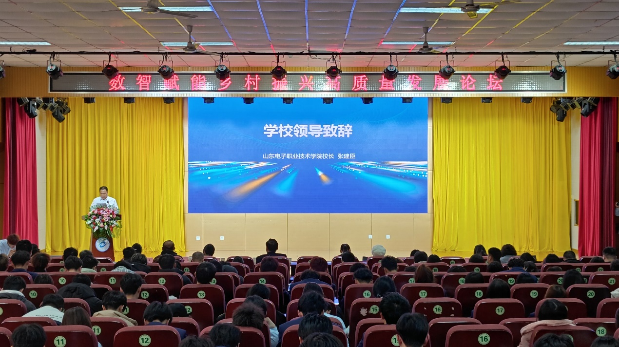 張建臣在致辭中代表山東電子職業(yè)技術(shù)學(xué)院對(duì)參與本次論壇的各位嘉賓表示歡迎,并介紹了學(xué)校創(chuàng)新發(fā)展的基本情況,以及山電“一條龍”專業(yè)群鏈建設(shè)思路。他提到,山東作為中華民族母親河—黃河的流經(jīng)地,不僅承載著厚重的歷史文化,更孕育了豐富的自然資源,具有廣闊的發(fā)展?jié)摿Α=陙恚S著鄉(xiāng)村振興戰(zhàn)略的深入實(shí)施,沿黃地區(qū)正迎來前所未有的發(fā)展機(jī)遇,而低空經(jīng)濟(jì)、數(shù)智技術(shù)作為新興的經(jīng)濟(jì)形態(tài),正逐漸成為推動(dòng)沿黃鄉(xiāng)村振興的重要力量。學(xué)校作為一所致力于服務(wù)地方經(jīng)濟(jì)社會(huì)發(fā)展的高校,積極參與沿黃地區(qū)的鄉(xiāng)村振興工作,為沿黃地區(qū)的鄉(xiāng)村振興工作貢獻(xiàn)技術(shù)、貢獻(xiàn)人才。他表示,學(xué)校將繼續(xù)深化產(chǎn)教融合,加強(qiáng)校企合作,充分發(fā)揮專業(yè)優(yōu)勢,積極推進(jìn)大數(shù)據(jù)、人工智能、無人機(jī)、數(shù)字商務(wù)、數(shù)字營銷在沿黃鄉(xiāng)村振興中的作用,在沿黃鄉(xiāng)村振興高質(zhì)量發(fā)展中彰顯山電力量。
