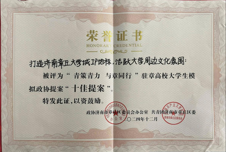 12月5日,我校趙宇真、王智燁同學參加章丘區(qū)政協(xié)、團章丘區(qū)委主辦的“青策青力 與章同行”駐章高校大學生模擬政協(xié)提案交流展示活動,經(jīng)過前期提案選題、撰寫打磨、現(xiàn)場展示等過程,我校選送的模擬政協(xié)提案《打造濟南章丘大學城IP地標,活躍大學周邊文化氛圍》《就近依托大學資源,建立社區(qū)共享自習室》獲得駐章高校大學生模擬政協(xié)提案“十佳提案”稱號。