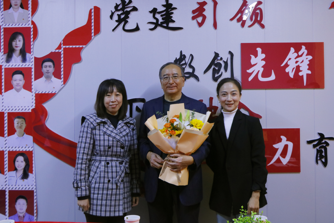 王佩、高曉晶代表學(xué)校為于欽良同志送上鮮花,送去對“五老”同志的親切關(guān)懷。