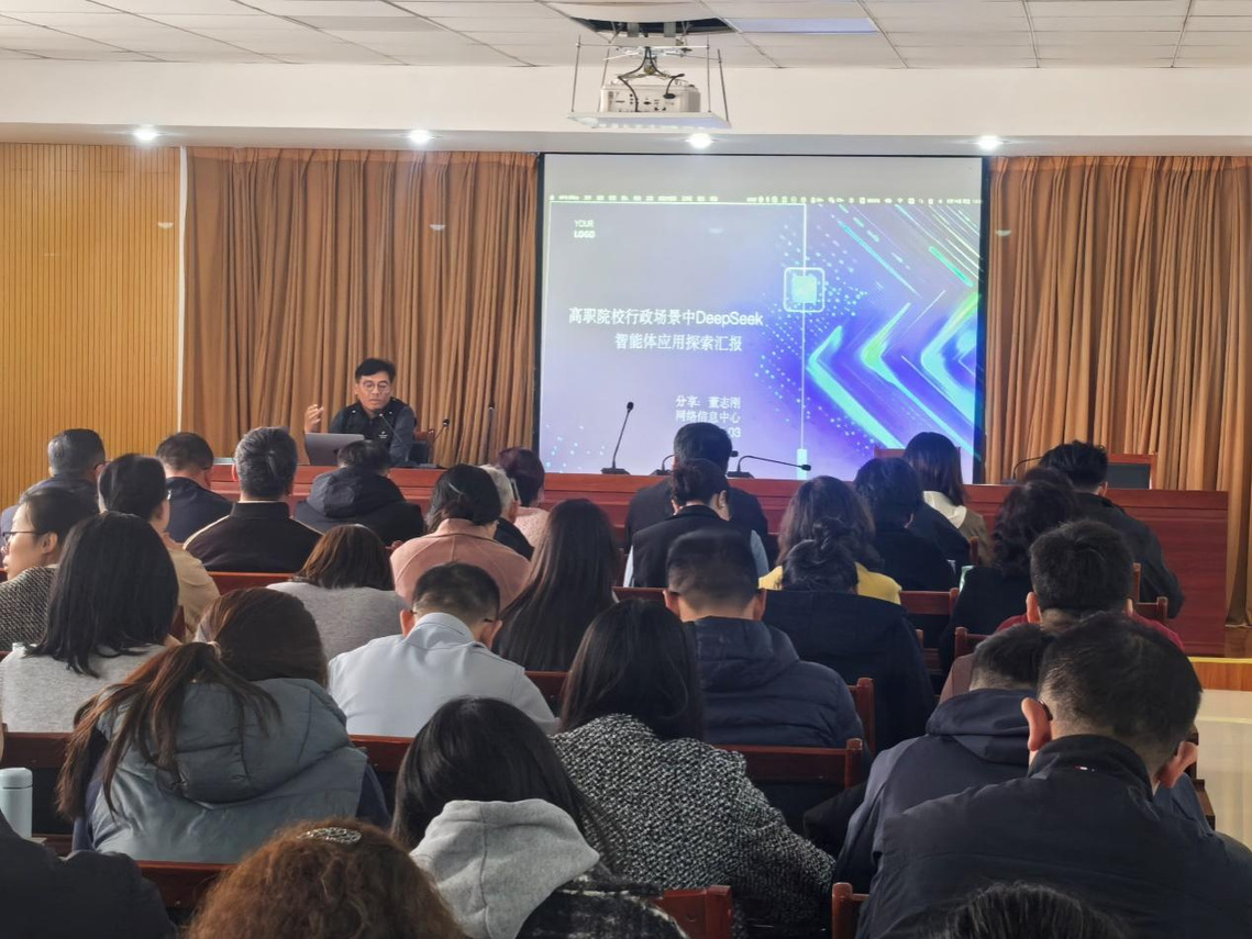 3月14日和3月21日,學校分兩期舉辦行政人員及輔導員業(yè)務能力專題培訓。網(wǎng)絡信息中心主任董志剛以《AI辦公新伙伴:DeepSeek在行政場景的應用探索》為題,從DeepSeek功能介紹、賦能辦公場景、溝通術語規(guī)范等方面進行講解,為參訓學員更好地使用DeepSeek,實現(xiàn)智慧化辦公提供了針對性的指導。