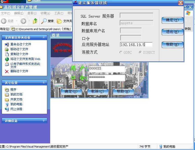 雙擊setup進行安裝,安裝完成之后,點擊“高校固定資產(chǎn)管理” 。登陸名稱設為自己的賬號即可,系統(tǒng)會提示建立服務器連接選項,