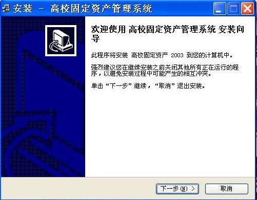 將已經(jīng)下載的固定資產(chǎn)管理系統(tǒng)運行安裝,出現(xiàn)如圖提示