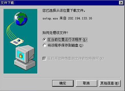 如果還沒有下載,請點擊此處下載,出現(xiàn)提示(這是在windws98下的提示窗口,windows2000和windows xp會有所不同,但主要內(nèi)容是一樣的)