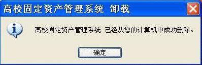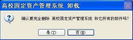 找到“開始/程序/固定資產(chǎn)管理系統(tǒng)/卸載固定資產(chǎn)管理系統(tǒng)”,點擊 后會出現(xiàn)如圖所示提示框