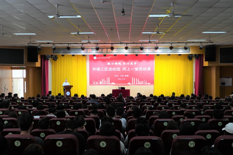 為深入貫徹落實習近平總書記系列重要講話精神,落實立德樹人根本任務(wù),進一步弘揚勞模精神、勞動精神和工匠精神,唱響“勞動光榮、創(chuàng)造偉大”的時代主旋律,9月29日下午,學校工會、團委在學術(shù)報告廳聯(lián)合舉辦“凝心鑄魂 齊心筑夢”勞模工匠進校園主題宣講活動。學校副院長梁會亭、有關(guān)部門負責人,師生代表400余人參加了活動。工會主席齊學民主持報告會。