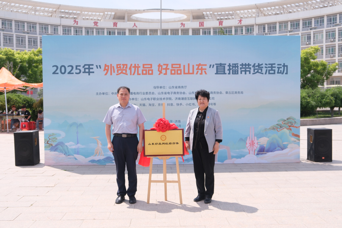 2025年5月15日,由山東省商務廳指導,中共山東省直播電商行業(yè)委員會、山東省電子商務協(xié)會、山東省跨境電子商務協(xié)會、章丘區(qū)商務局聯(lián)合主辦,我校與濟南潮音互聯(lián)網(wǎng)科技有限公司共同承辦的外貿(mào)優(yōu)品·好品山東直播帶貨進校園活動在校園廣場啟幕。本次活動獲得天貓、淘寶、京東、抖音、快手、小紅書、騰訊視頻號等電商平臺支持,吸引全省50余家優(yōu)質(zhì)企業(yè)攜外貿(mào)優(yōu)品、非遺老字號、特色工藝品參展,既為消費者呈現(xiàn)品質(zhì)盛宴,也為師生搭建了行業(yè)實踐平臺。