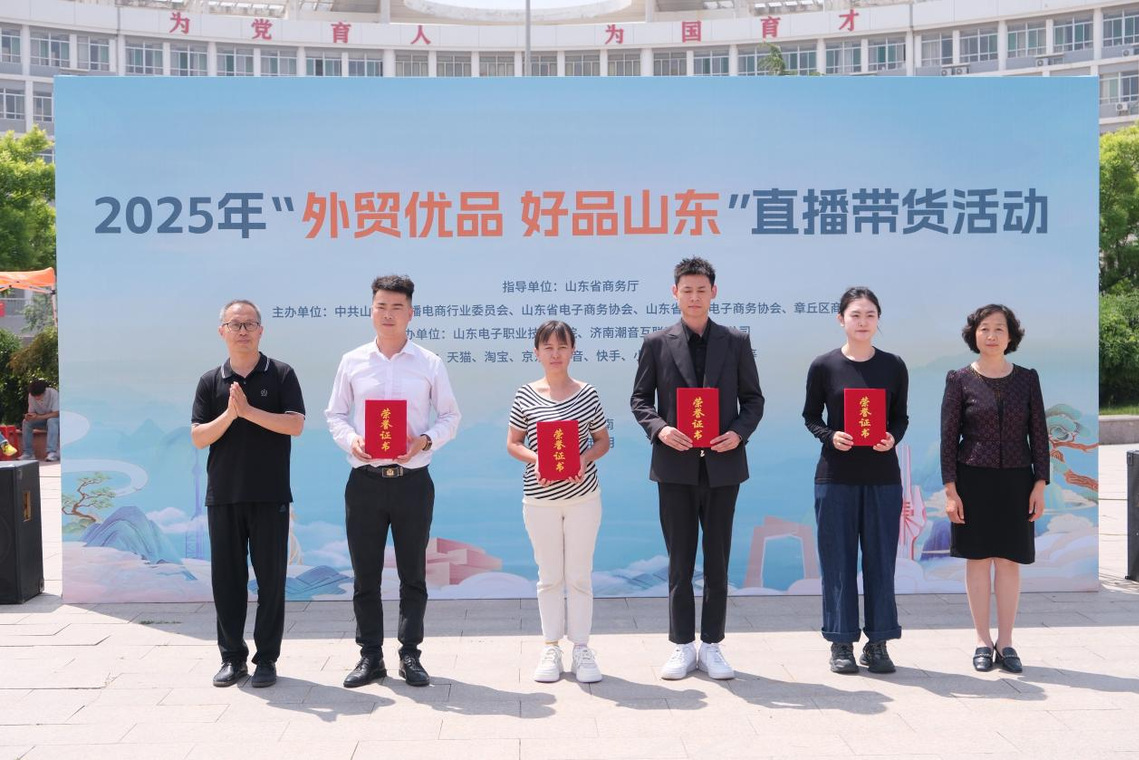 2025年5月15日,由山東省商務(wù)廳指導(dǎo),中共山東省直播電商行業(yè)委員會、山東省電子商務(wù)協(xié)會、山東省跨境電子商務(wù)協(xié)會、章丘區(qū)商務(wù)局聯(lián)合主辦,我校與濟(jì)南潮音互聯(lián)網(wǎng)科技有限公司共同承辦的外貿(mào)優(yōu)品·好品山東直播帶貨進(jìn)校園活動在校園廣場啟幕。本次活動獲得天貓、淘寶、京東、抖音、快手、小紅書、騰訊視頻號等電商平臺支持,吸引全省50余家優(yōu)質(zhì)企業(yè)攜外貿(mào)優(yōu)品、非遺老字號、特色工藝品參展,既為消費(fèi)者呈現(xiàn)品質(zhì)盛宴,也為師生搭建了行業(yè)實(shí)踐平臺。