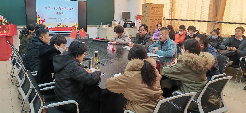 張同勝以《全面建設(shè)社會(huì)主義現(xiàn)代化國(guó)家的政治宣言和行動(dòng)綱領(lǐng)》為題,圍繞深入貫徹落實(shí)黨的二十大精神,從全面把握黨的二十的主題和主要成果、深刻領(lǐng)會(huì)黨的二十大提出的新思想新論斷及作出的新部署新要求、全面準(zhǔn)確領(lǐng)會(huì)學(xué)深悟透做實(shí)、育人實(shí)踐與探索等四個(gè)方面進(jìn)行了深刻闡述。報(bào)告主題鮮明、內(nèi)容豐富、旁征博引、重點(diǎn)突出,對(duì)于幫助老師們深刻領(lǐng)會(huì)黨的二十大精神,立足本職,立德樹(shù)人,更好地服務(wù)學(xué)院高質(zhì)量發(fā)展具有重要的指導(dǎo)意義。會(huì)后,老師們紛紛表示,要以此次宣講為契機(jī),更加深入地學(xué)習(xí)貫徹黨的二十大精神,扎實(shí)做好本職工作,為學(xué)院高質(zhì)量建設(shè)和創(chuàng)新發(fā)展做出更大貢獻(xiàn)。