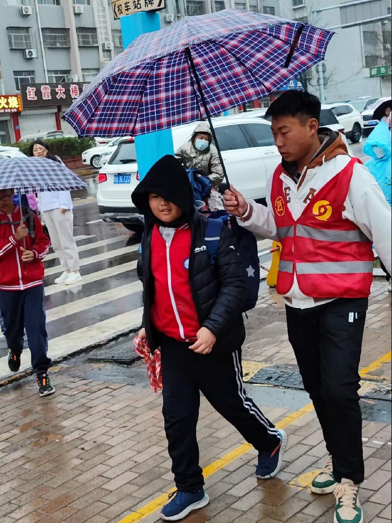 清明時節(jié),淫雨霏霏,乍暖還寒中,氣溫又降回了個位數(shù),給上學路上的小學生們帶來了諸多不便。然而,在章丘區(qū)道通實驗學校門口活躍著一道道靚麗的風景線,為這冷雨的天氣帶來陣陣暖意。他們就是山東電子子職業(yè)技術(shù)學院智能制造工程系“智啟青春”志愿服務隊護童助學崗的志愿者們。
