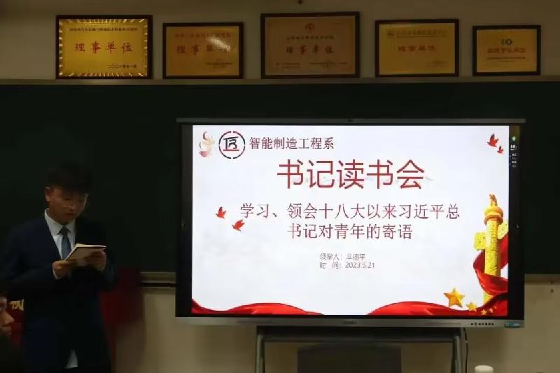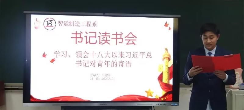 5月21日,智能制造工程系在綜合樓201會(huì)議室開(kāi)展“學(xué)習(xí)、領(lǐng)會(huì)黨的十八大以來(lái)習(xí)近平總書記對(duì)青年的殷切寄語(yǔ)”主題書記讀書會(huì)活動(dòng)。系輔導(dǎo)員辛德平、2022級(jí)各班團(tuán)支書和2023年新發(fā)展團(tuán)員參加活動(dòng)。