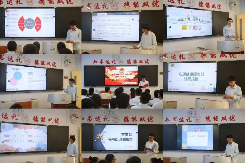 學(xué)生會各部門負(fù)責(zé)人進(jìn)行述職。各部門負(fù)責(zé)人對思想作風(fēng)建設(shè)、工作履職成效、學(xué)年重點(diǎn)工作、特色活動舉辦情況進(jìn)行匯報(bào)。同時各部門負(fù)責(zé)人對未來的工作與部門安排進(jìn)行了展望,全面展示了在過去一年學(xué)生工作中銳意進(jìn)取、開拓創(chuàng)新的工作篇章,在交流中進(jìn)步,在發(fā)展中不斷前進(jìn)!