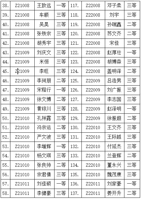 根據山東省教育廳《關于開展2023年獎學金評審和材料報送工作的通知》精神,為確保各項獎政策公平、公正實施,根據山東省和學校《學生資助資金管理辦法》《山東省學生資助管理標準》和相關獎學金評審辦法,現(xiàn)就我系學院獎學金157名同學進行公示如下: