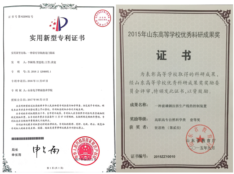負責市級科研項目1項、參與市級科研1項,在國內外交流大會或學術期刊公開發(fā)表論文多篇,2011年帶領學生參加2011山東省大學生機電產品創(chuàng)新設計競賽,獲二等獎;與企業(yè)合作進行專利技術的研發(fā)工作,先后獲批2項實用新型專利,其中1項榮獲山東高等學校優(yōu)秀科研成果一等獎;2012年9月至2013年7月參加并完成了教育部全國青年骨干教師國內訪問學者項目;作為主講教師建設校級精品課程1門;指導“機電發(fā)燒友”學生社團工作。