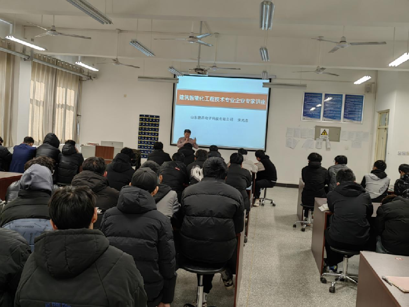首先,宋總為同學們大致介紹了德昌電子公司的基本情況,該企業(yè)為視頻監(jiān)控和建筑節(jié)能技術解決方案供應商。隨即結合同學們的專業(yè)方向重點介紹了建筑智能化工程技術專業(yè)的相關知識以及就業(yè)前景,并詳細介紹了視頻監(jiān)控技術的發(fā)展過程、應用領域以及未來的發(fā)展趨勢以及樓宇自控在建筑節(jié)能方面的應用,拓寬了同學們的視野、啟迪了同學們的思維。其次,宋總對國內外的視頻監(jiān)控產品作了對比講解,讓同學們了解了視頻監(jiān)控系統(tǒng)的民族企業(yè),加強了民族自豪感和自信心。最后,宋總結和同學們所學的專業(yè)核心課程對未來可能從事的就業(yè)崗位向與會的同學做了分析講解。