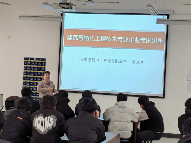 企業(yè)賦能智造,校企共拓新篇。11月30日,智能制造工程系特邀山東德昌電子科技有限公司總經理宋光喜在5408招投標實訓室為智能制造工程系2022級和2023級建筑智能化工程技術專業(yè)的學生開展了一場生動有趣的專業(yè)講座。