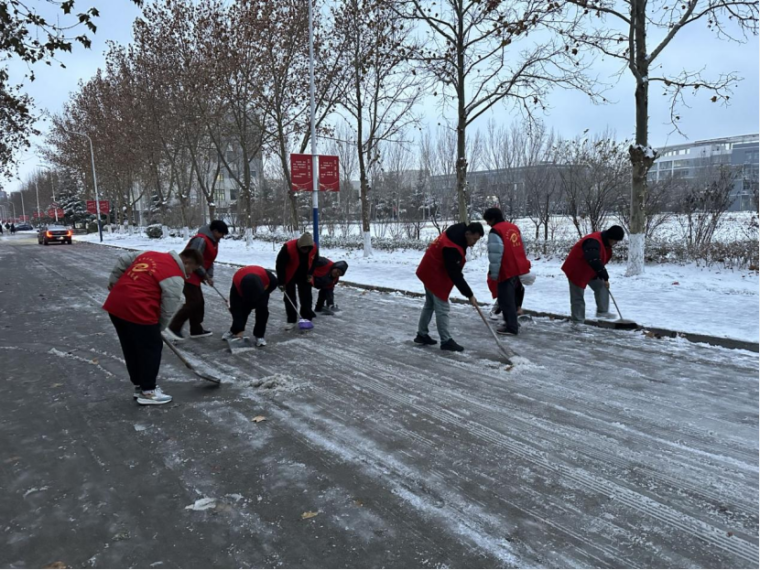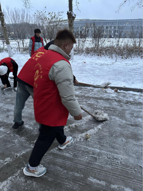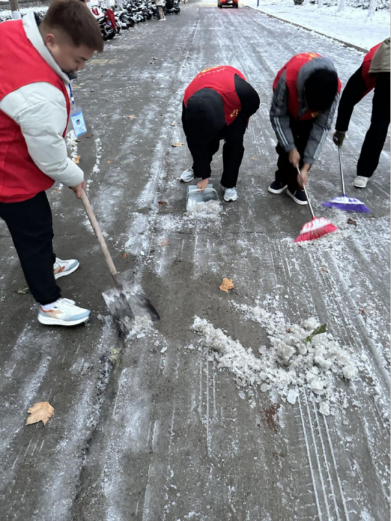 隨著凜冽寒風(fēng),氣溫驟降,降雪給出行帶來(lái)了不便,為確保校園內(nèi)道路干凈暢通,保證師生安全出行,青年團(tuán)員們迅速行動(dòng)起來(lái),積極組織志愿者,開(kāi)展清掃積雪工作。