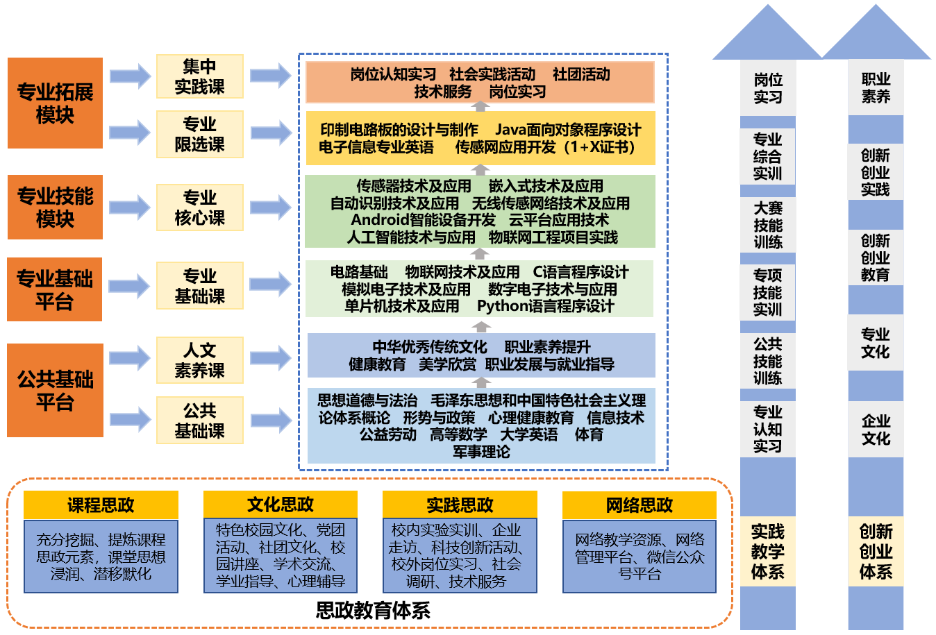 主干課程:物聯(lián)網(wǎng)技術(shù)及應(yīng)用、嵌入技術(shù)及應(yīng)用、傳感器技術(shù)及應(yīng)用、無(wú)線傳感網(wǎng)絡(luò)技術(shù)及應(yīng)用、物聯(lián)網(wǎng)工程項(xiàng)目實(shí)踐等。