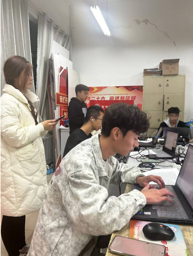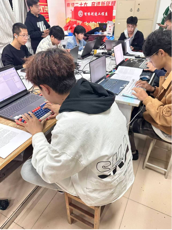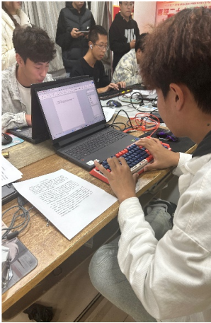 果然,比賽正式開始時,同學們就火力全開,整個比賽過程中緊張的氛圍絲毫未減。選手們端坐電腦前,全神專注,只見手指靈活地在鍵盤上跳躍著,仿佛彈奏了一曲激昂的樂章,鍵盤聲如同擊鼓聲,奏出了屬于新時代物控學子的“速度與激情”。