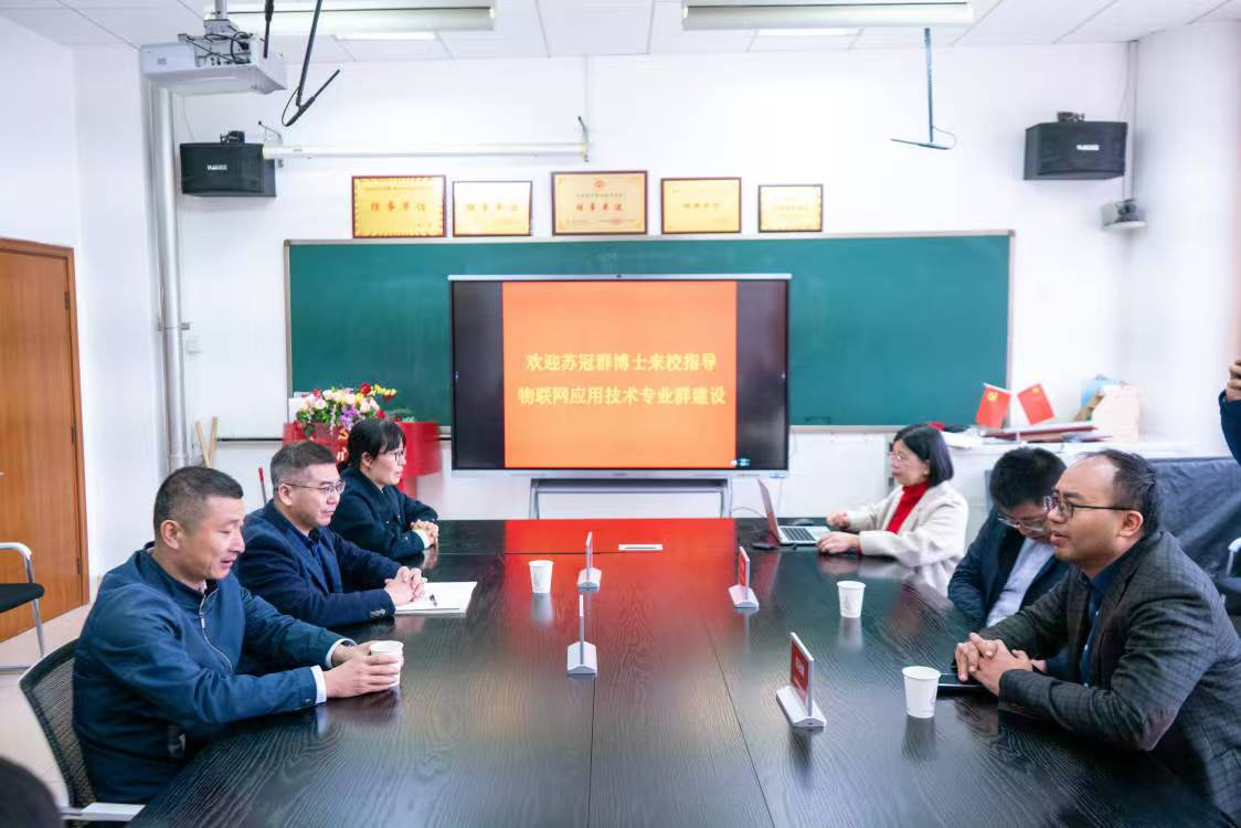 儀式活動(dòng)后,蘇冠群秘書長(zhǎng)、山東青橙數(shù)科任啟迎總經(jīng)理、物控學(xué)院領(lǐng)導(dǎo)及物聯(lián)網(wǎng)技術(shù)教研室全體教師,行校企聚力,共同研討物聯(lián)網(wǎng)應(yīng)用技術(shù)專業(yè)群發(fā)展方向,分析新形勢(shì)下的專業(yè)定位和數(shù)字化轉(zhuǎn)型路徑,對(duì)接產(chǎn)業(yè)崗位梳理課程設(shè)置,并就低空經(jīng)濟(jì)、智能網(wǎng)聯(lián)汽車等熱點(diǎn)領(lǐng)域展開討論。