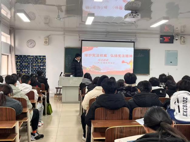 隨后,同學們對《中華人民共和國憲法》的部分章節(jié)進行了深入學習。激烈的討論聲回響在整個教室。在討論到憲法的重要地位時,同學孟勇名表示,以前只知道憲法是我國的根本大法,但是沒有系統(tǒng)學習過,經(jīng)過這次學院集中學習,使他有了更深刻的認知,明白了自身權(quán)利與義務(wù)的來源,今后會好好學習法律知識。