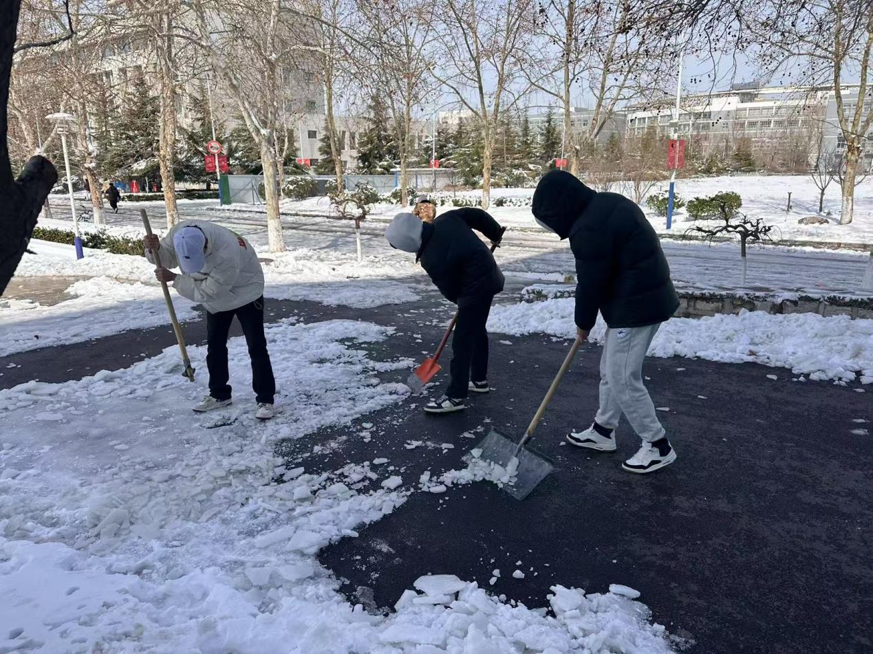活動(dòng)伊始,公寓服務(wù)管理中心干部迅速分工,明確責(zé)任區(qū)域,帶領(lǐng)干事們手持鐵鍬、掃帚等工具來(lái)到公寓周邊的主干道、人行道及樓棟出入口等積雪較厚的區(qū)域,開(kāi)始清掃工作。盡管天氣寒冷,但大家熱情高漲,干勁十足。有的同學(xué)用鐵鍬鏟除厚厚的積雪,有的用掃帚清掃路面,還有的將積雪集中到指定地點(diǎn)。經(jīng)過(guò)幾個(gè)小時(shí)的共同努力,公寓周邊的積雪被清理干凈,道路恢復(fù)暢通。