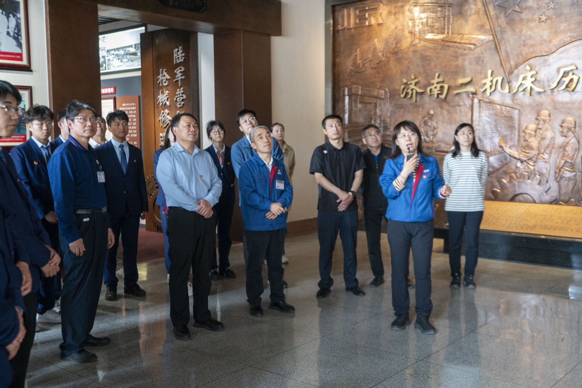 當(dāng)日,調(diào)研團(tuán)隊(duì)首先參觀了濟(jì)南二機(jī)床集團(tuán)的企業(yè)博物館。在館內(nèi),通過(guò)豐富的歷史資料、實(shí)物展示以及工作人員的詳細(xì)講解,師生們?nèi)媪私饬藵?jì)南二機(jī)床集團(tuán)自1937年創(chuàng)立以來(lái),歷經(jīng)歲月洗禮,從一家普通工廠逐步發(fā)展成為全國(guó)機(jī)床行業(yè)大型重點(diǎn)骨干企業(yè),乃至躋身世界三大數(shù)控沖壓裝備制造商行列的輝煌歷程。集團(tuán)在不同歷史時(shí)期攻克的技術(shù)難題、取得的創(chuàng)新成果,以及秉持的“為大國(guó)鑄重器”的堅(jiān)定信念,深深感染了在場(chǎng)的每一個(gè)人,讓大家深刻體會(huì)到制造業(yè)對(duì)于國(guó)家發(fā)展的重要支撐作用,以及企業(yè)在技術(shù)創(chuàng)新和產(chǎn)業(yè)升級(jí)中的不懈努力。