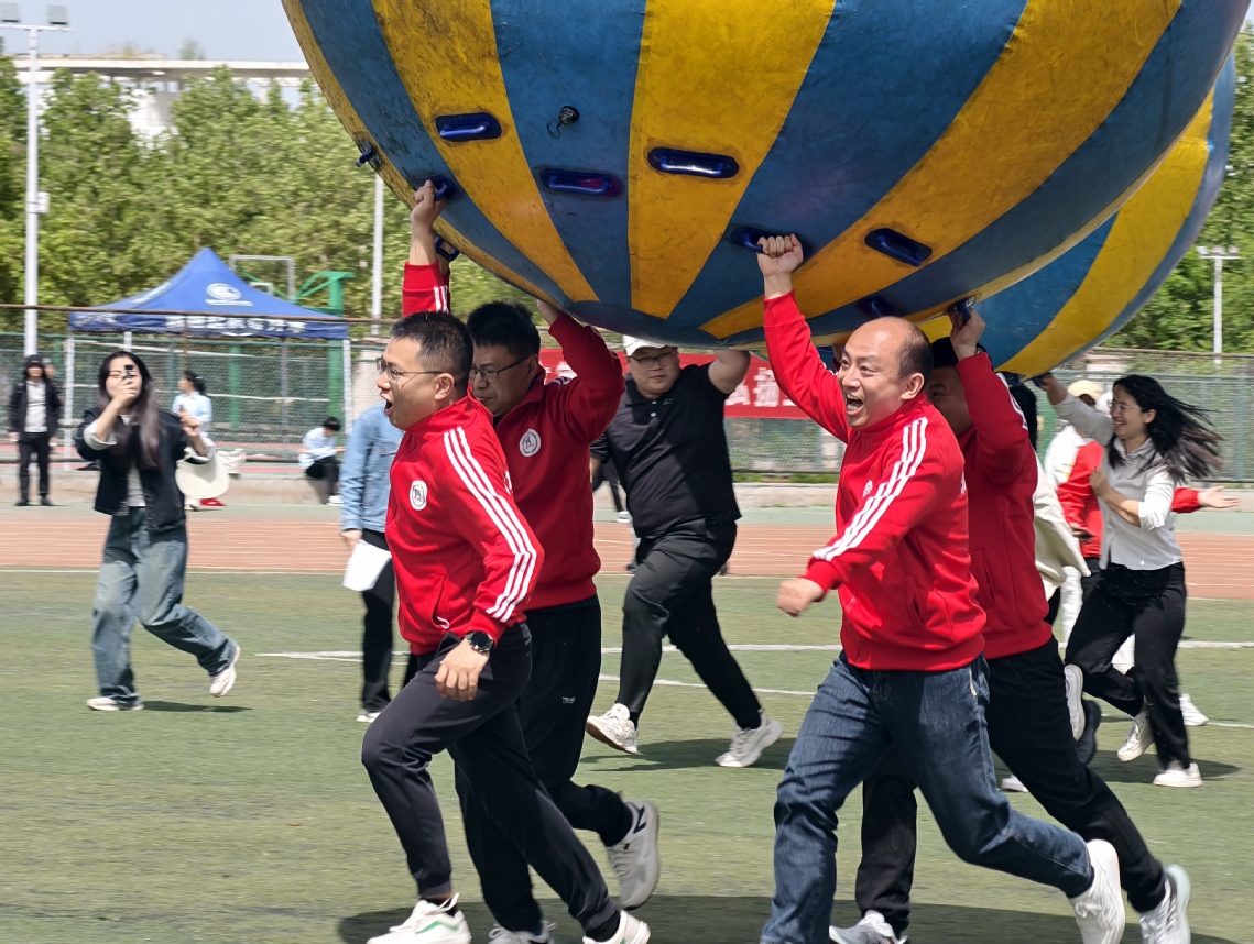 在集體項目中,學院教師化身“賽場智多星”,將默契配合與策略智慧展現(xiàn)得淋漓盡致。鴻運彩球比賽中,六名教師手托巨型彩球,通過口號統(tǒng)一步伐,以零失誤完成百米沖刺;五谷豐登項目中,老師們挑起竹制籮筐化身“田野挑夫”,接力往返30米賽道,每人精準挑回一種農(nóng)作物,現(xiàn)場觀眾笑稱“這是科技教師變身農(nóng)耕能手”;協(xié)力推進環(huán)節(jié)更是燃爆全場,參賽教師腳踩踏板,手舉圓柱形道具,以“人形戰(zhàn)車”姿態(tài)喊著號子向終點挺進,步伐整齊如齒輪咬合;4×100米混合接力賽中,四名教師配合無間,用接續(xù)奔跑詮釋團隊力量。現(xiàn)場加油聲此起彼伏,彰顯了學院教職工的凝聚力與向心力。