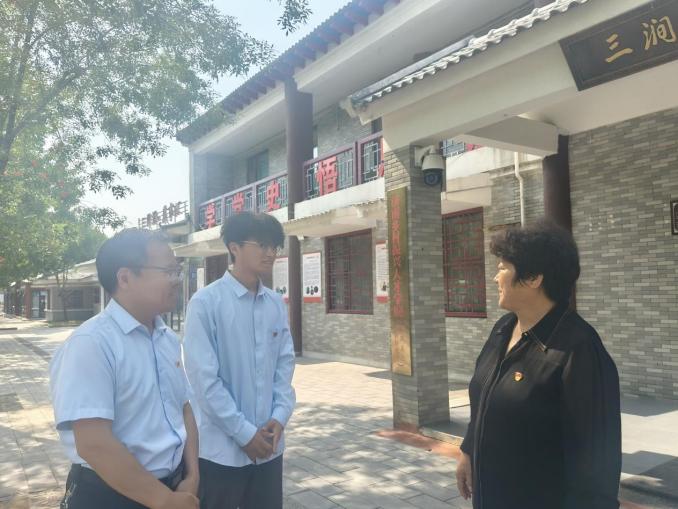 大家在葉貴芬主任的帶領(lǐng)下走進(jìn)三澗溪村,實(shí)地感受在黨的領(lǐng)導(dǎo)下鄉(xiāng)村發(fā)生的巨大變化,深刻領(lǐng)悟鄉(xiāng)村振興戰(zhàn)略的生動(dòng)實(shí)踐與重要意義。師生們實(shí)地走訪和參觀了村黨群服務(wù)中心與鄉(xiāng)村振興展館。在這里,詳實(shí)的村史檔案、生動(dòng)的影像資料以及深入的現(xiàn)場(chǎng)講解,全方位地展示了三澗溪村的發(fā)展脈絡(luò)。通過實(shí)地參觀和訪談,師生們系統(tǒng)了解到,三澗溪村以黨建為核心,凝聚起強(qiáng)大的發(fā)展合力。同時(shí)積極培育文明鄉(xiāng)風(fēng),以優(yōu)秀傳統(tǒng)文化滋養(yǎng)村民心靈,營(yíng)造了和諧向上的鄉(xiāng)村氛圍,有力地助推了鄉(xiāng)村振興戰(zhàn)略的實(shí)施。在村莊的滄桑巨變中,師生們深刻感悟到思想的引領(lǐng)作用,更加堅(jiān)定了對(duì)習(xí)近平新時(shí)代中國(guó)特色社會(huì)主義思想的信仰。