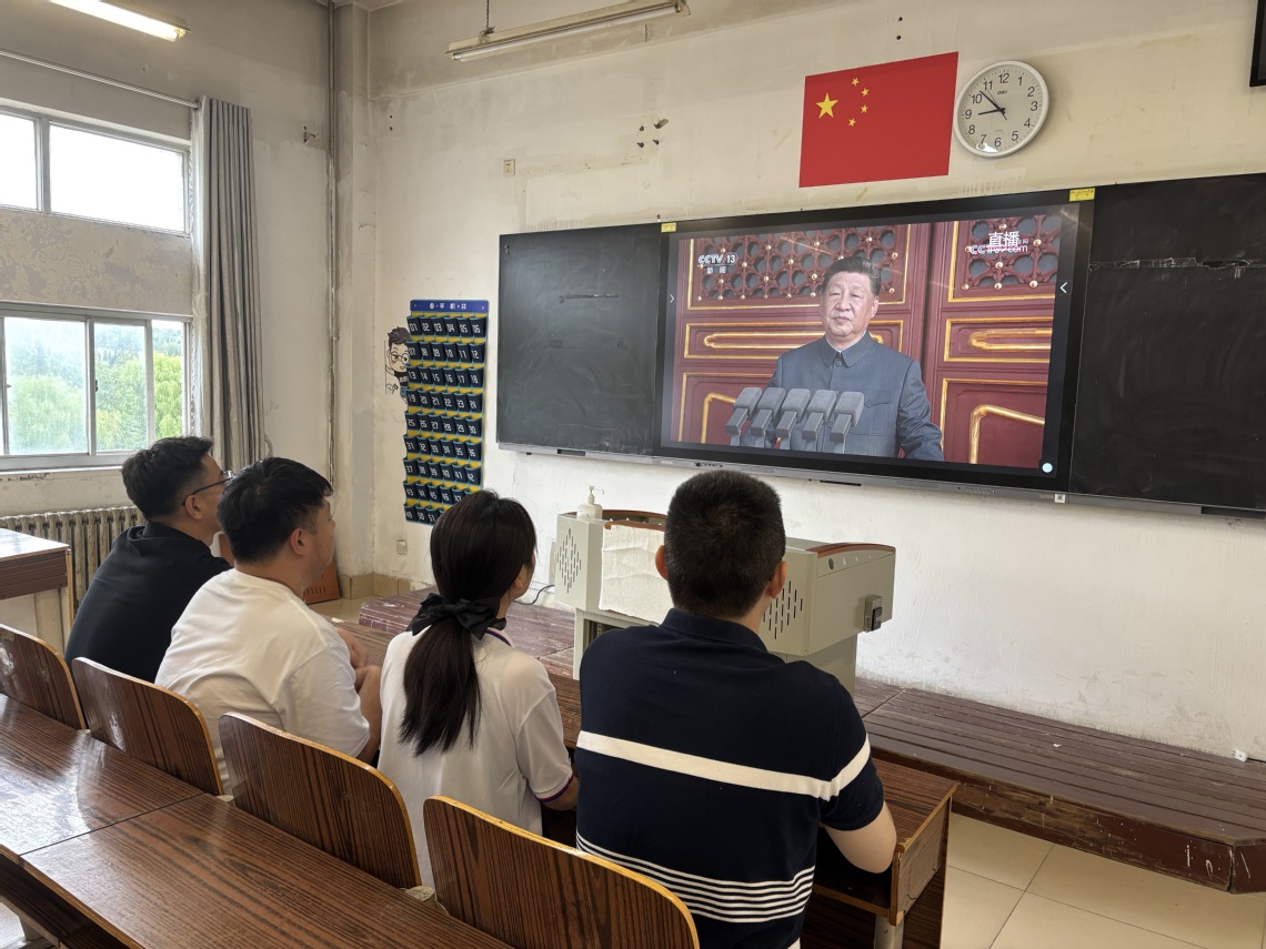 上午9時(shí),師生齊聚一堂,認(rèn)真聆聽(tīng)習(xí)近平總書(shū)記的重要講話,共同見(jiàn)證莊嚴(yán)時(shí)刻,感受偉大抗戰(zhàn)精神和民族精神。閱兵式上,受閱部隊(duì)的整齊方陣、先進(jìn)裝備,讓大家備受鼓舞。隨著大會(huì)上中華人民共和國(guó)國(guó)歌《義勇軍進(jìn)行曲》的響起,師生們的民族自豪感油然而生,眼中不免泛起淚花。當(dāng)閱兵儀式上一列列裝備方隊(duì)展示著大國(guó)重器的強(qiáng)盛,一架架戰(zhàn)機(jī)從天安門(mén)廣場(chǎng)上呼嘯而過(guò)時(shí),師生眼神中滿是專注和崇敬。