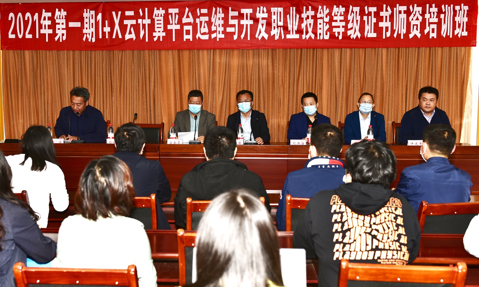 5月10日,全國2021年第一期“1+X”云計算平臺運維與開發(fā)職業(yè)技能等級證書師資培訓(xùn)班開班儀式在我校行政辦公樓222會議室隆重舉行,副院長梁會亭、南京第五十五所技術(shù)開發(fā)有限公司余云峰副總裁、國基北盛(南京)科技發(fā)展有限公司技術(shù)總監(jiān)宋學(xué)永、國基北盛(南京)科技發(fā)展有限公司校企合作中心總經(jīng)理許建軍、濟南職業(yè)學(xué)院教授劉洪海出席開班儀式。開班儀式由計算機與軟件工程系主任劉學(xué)主持,來自全國20所高職院校的40余名教師參加了開班儀式。