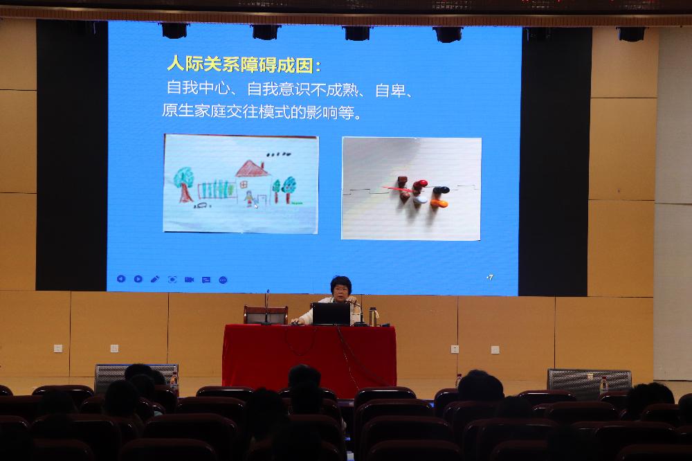 楊素華教授以《用“心”關(guān)愛學(xué)生,做學(xué)生心靈成長引路人》為題,運(yùn)用有趣的心理測(cè)驗(yàn)開場(chǎng),有效調(diào)動(dòng)了在場(chǎng)師生的積極性。隨后,她結(jié)合大量的學(xué)生管理經(jīng)驗(yàn)和咨詢案例,列舉了當(dāng)下大學(xué)生中常見的心理問題及癥狀,并從啟動(dòng)系統(tǒng)資源、完善組織架構(gòu)和調(diào)動(dòng)學(xué)生骨干力量三個(gè)方面進(jìn)行了應(yīng)對(duì)策略的具體分析,同時(shí)結(jié)合典型案例展示了資源取向技術(shù)在大學(xué)生心理咨詢中的具體應(yīng)用,展示了如何以目標(biāo)為導(dǎo)向、以資源為本來剖析問題、處理問題。重點(diǎn)對(duì)老師們最為關(guān)心和困惑的問題--大學(xué)生心理危機(jī)識(shí)別與干預(yù)進(jìn)行了專業(yè)的解讀和建議。