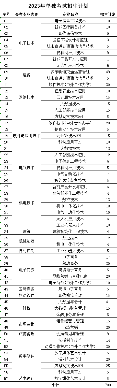 單獨(dú)考試招生計劃